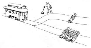 一輛失控的列車在鐵軌上行駛。在列車正行進的軌道上,有五個人被綁起來,無法動彈。列車將要碾壓過他們,你站在改變列車軌道的操縱杆旁。如果拉動此杆,則列車將切換到另一條軌道上。但是,另一條軌道上也有一個人被綁著。